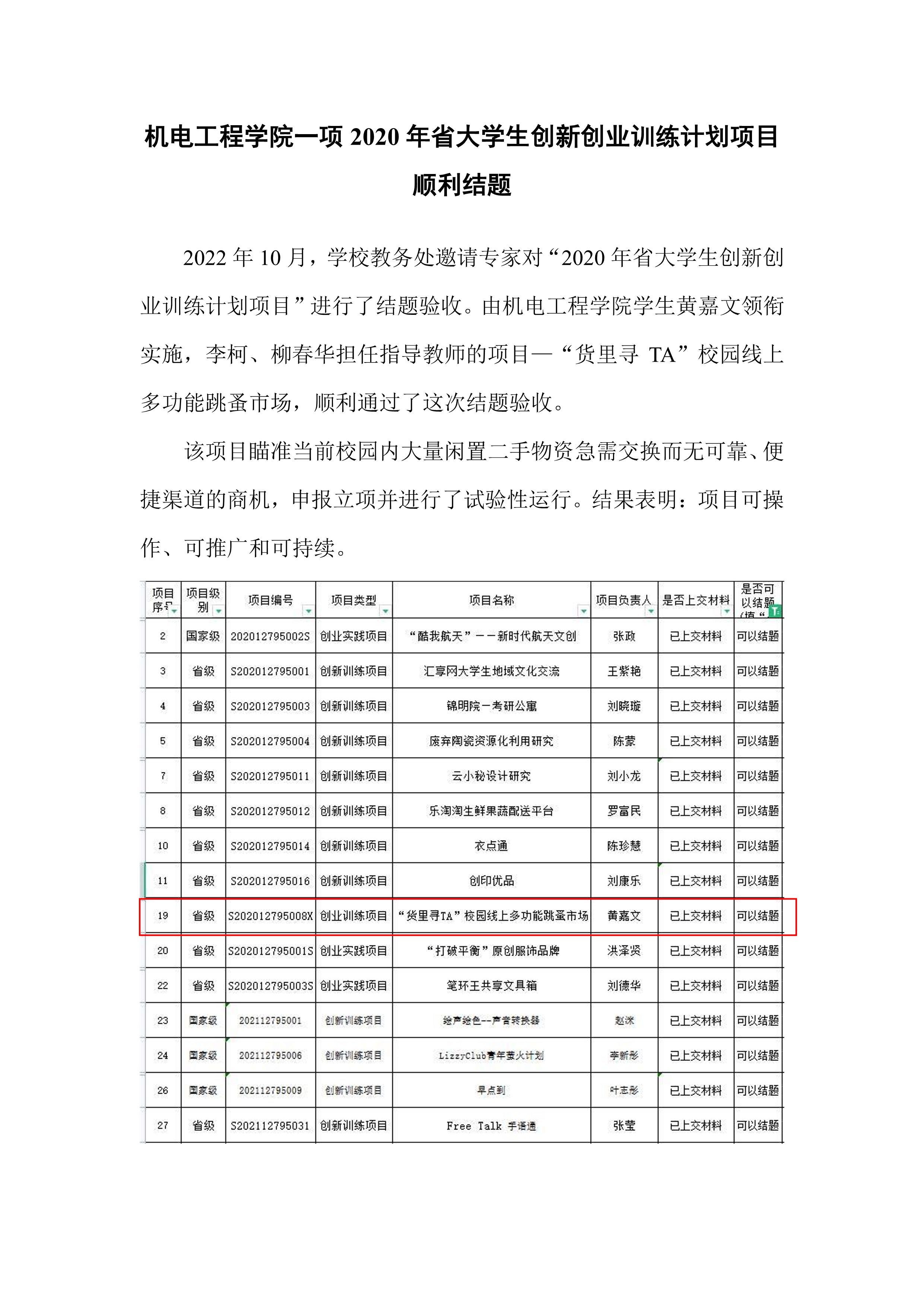 机电工程学院一项2020年省大学生创新创业训练计划项目顺利结题