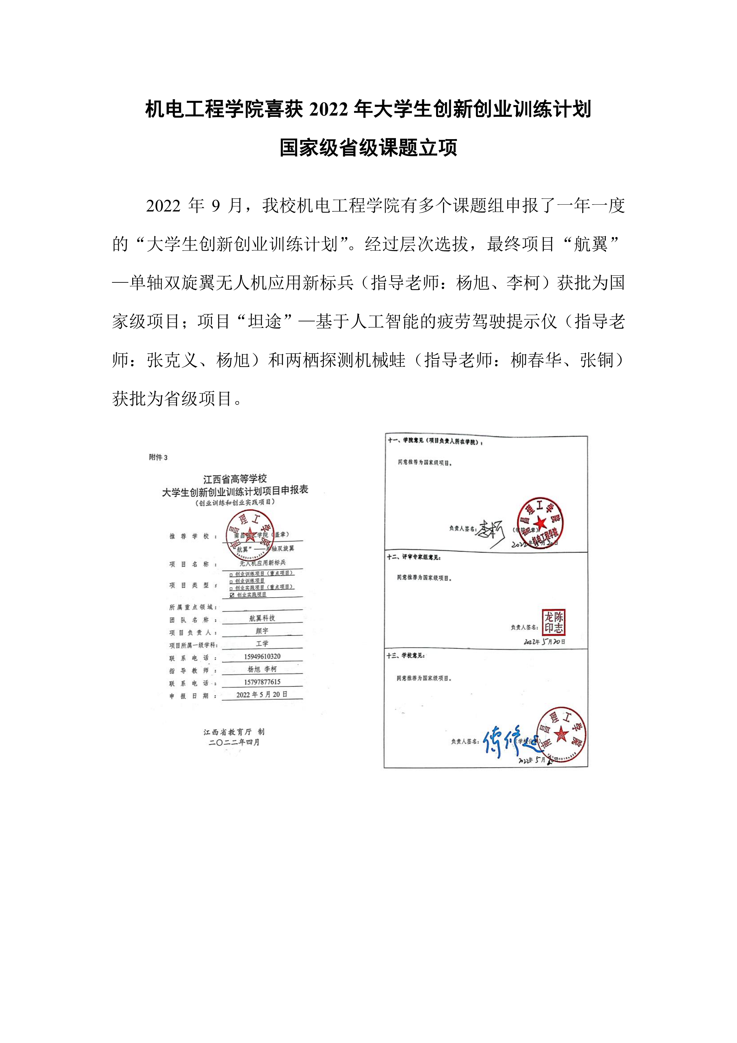 机电工程学院喜获2022年大学生创新创业训练计划国家级省级课题立项