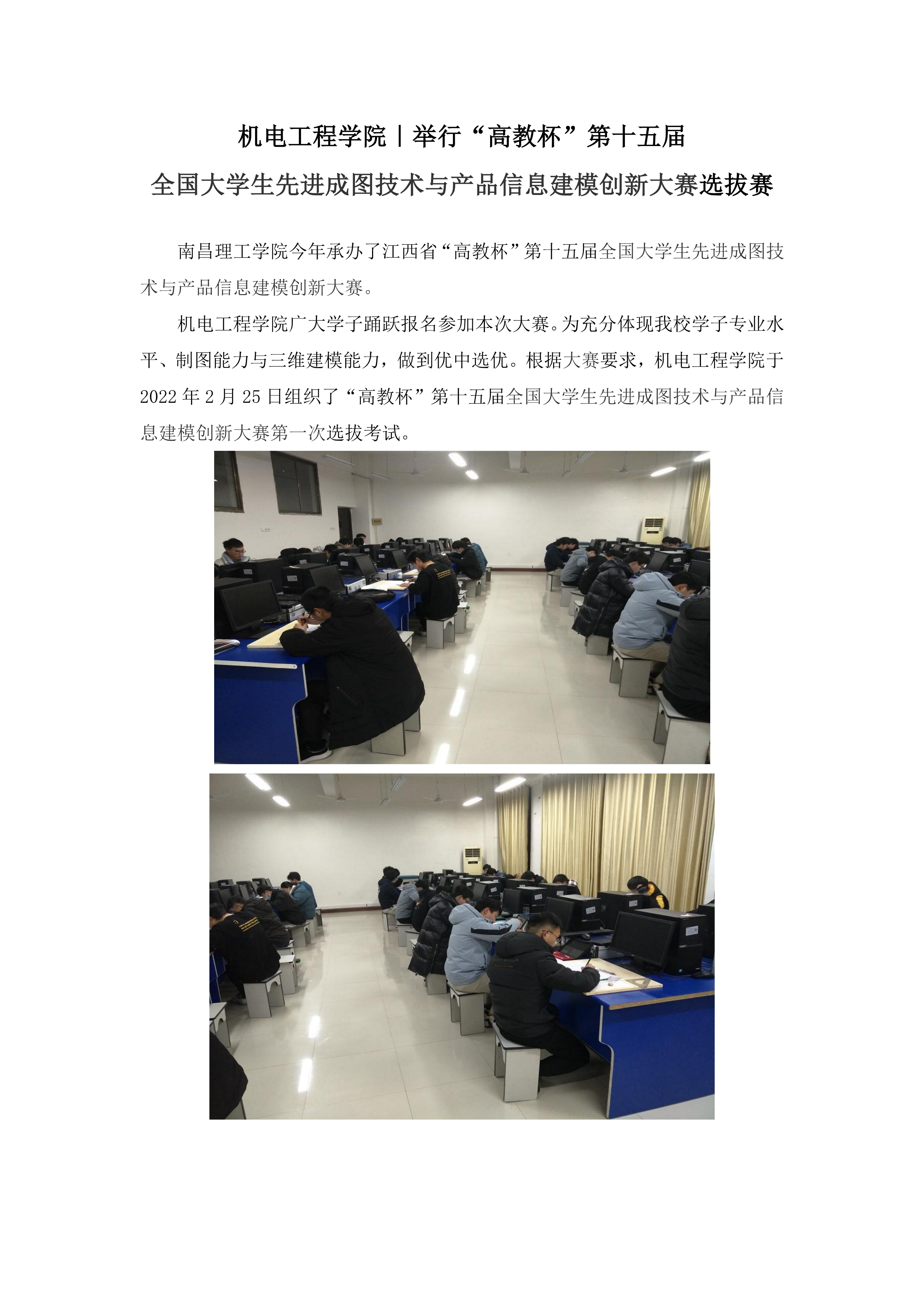 机电工程学院举行“高教杯”第十五届全国大学生先进成图技术与产品信息建模创新大赛选拔赛