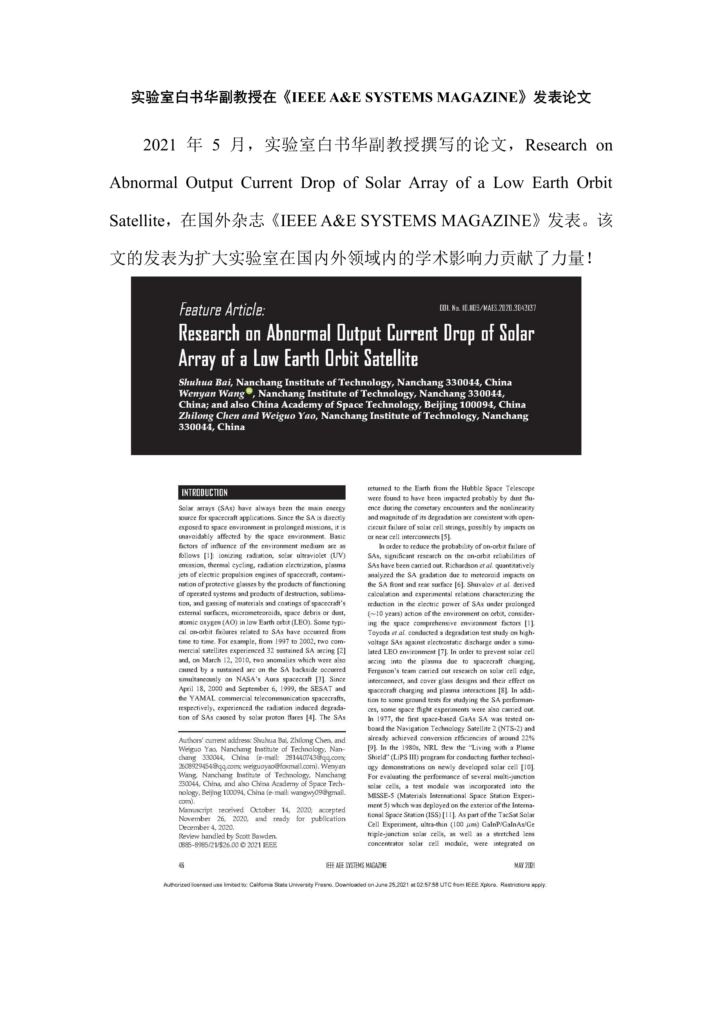 实验室白书华副教授在IEEE A&E SYSTEMS MAGAZINE发表论文