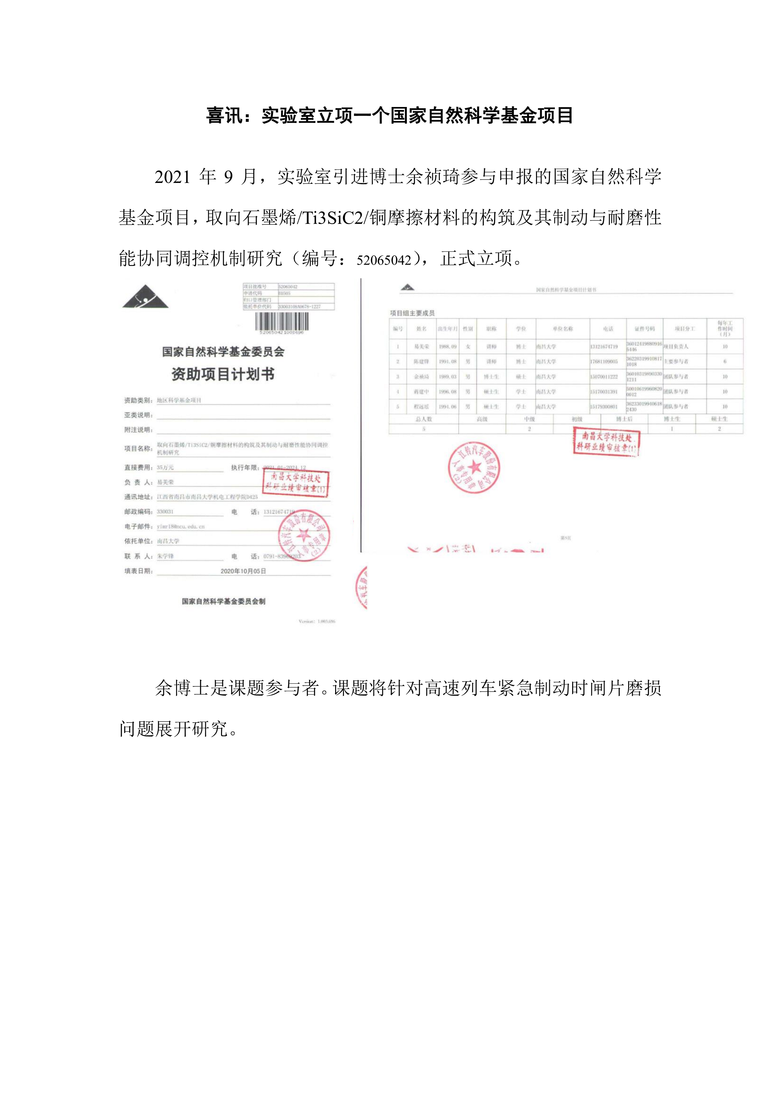 喜讯:实验室立项一个国家自然科学基金项目