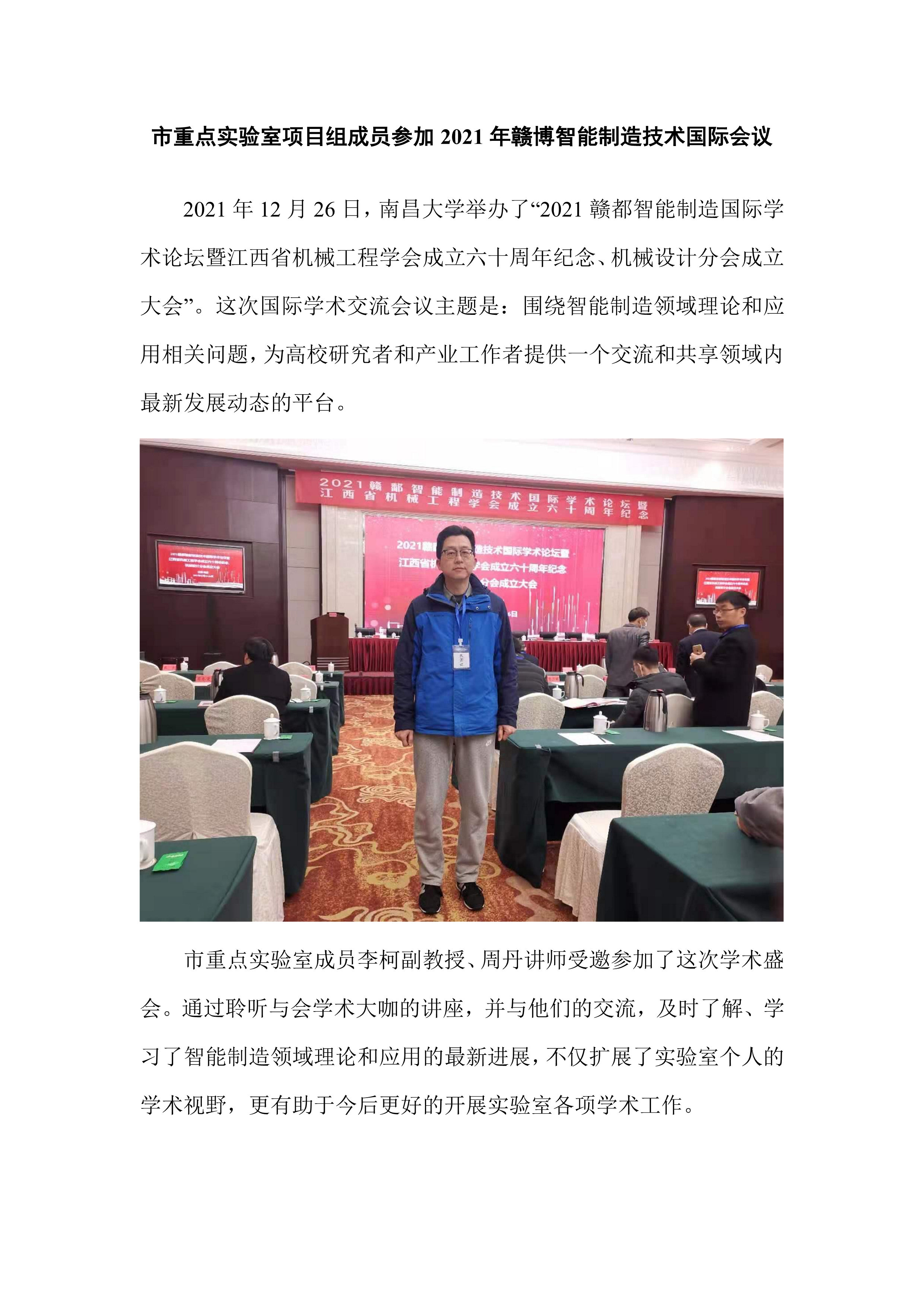 市重点实验室项目组成员参加2021年赣博智能制造技术国际会议