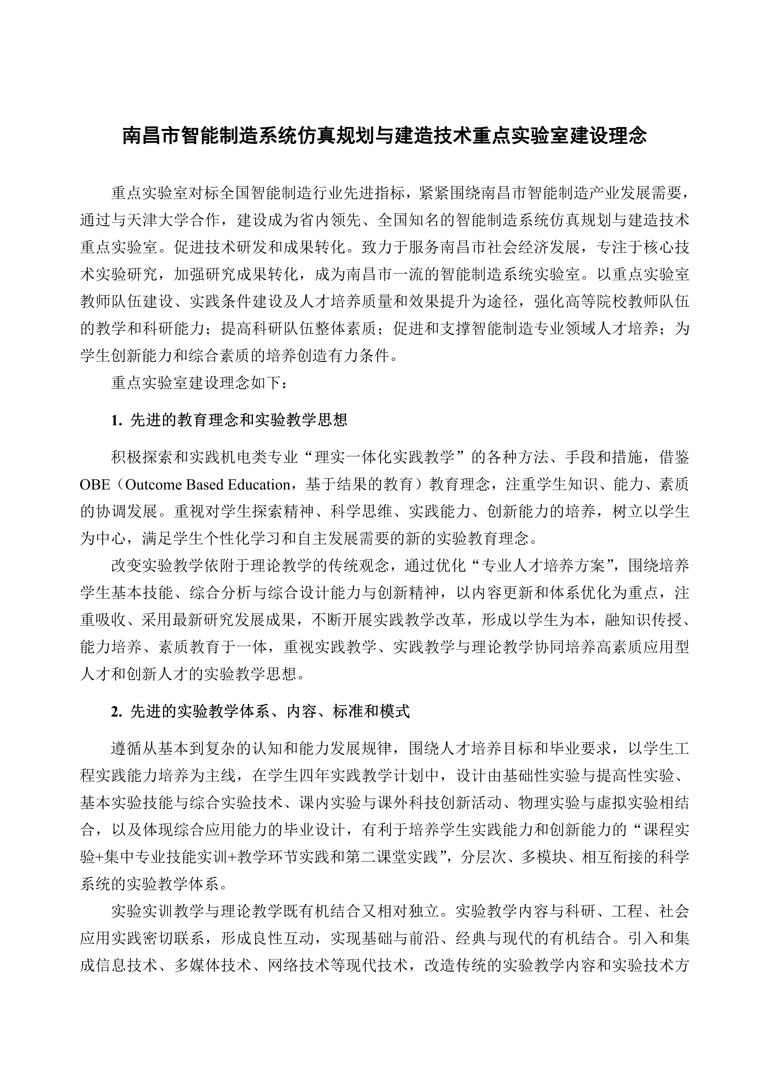 南昌市智能制造系统仿真规划与建造技术重点实验室建设理念