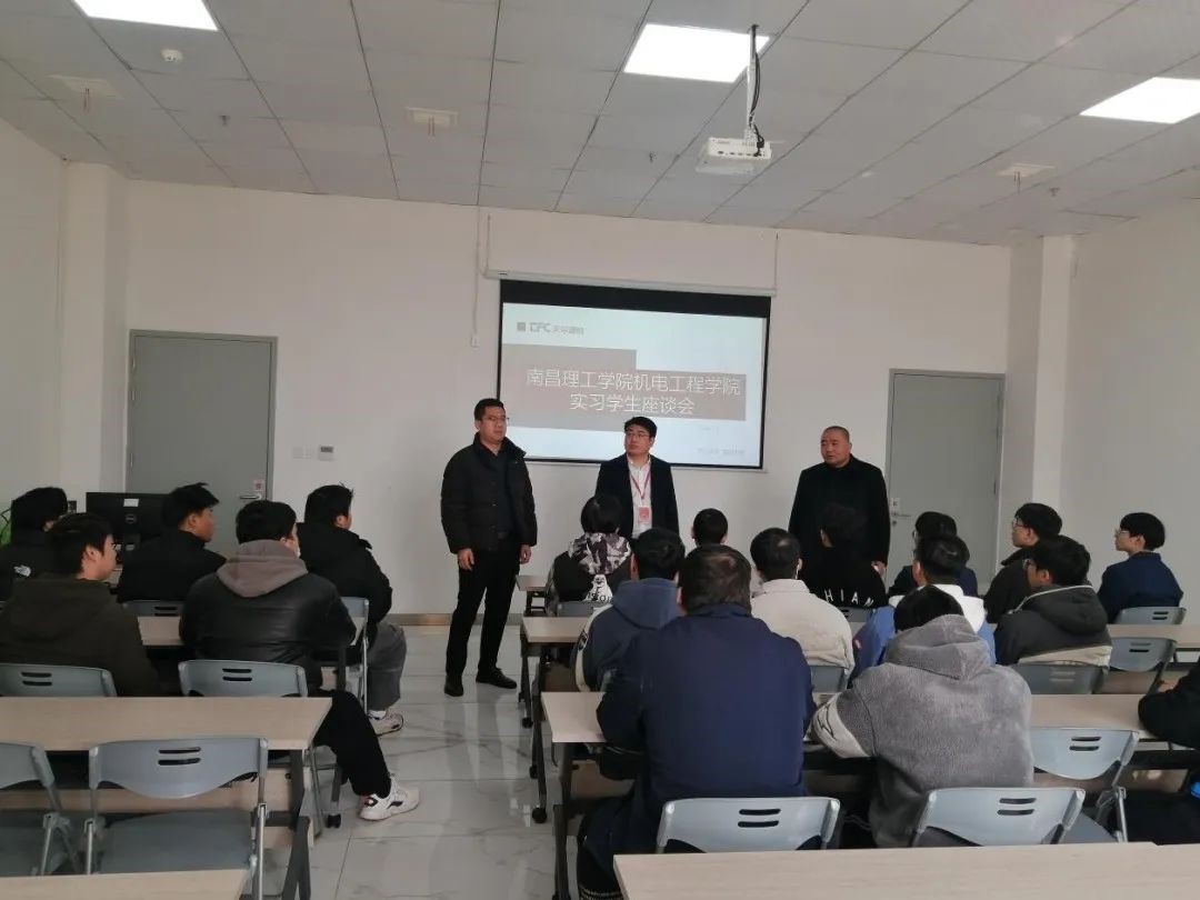 为进一步加强学院与2024届毕业生的联系,深入了解毕业生创新创业形势,各领域毕业生的发展情况,做到毕业生离校在岗不“失联”,时刻关心、关注学生的工作、生活情况,2024年1月3日,机电工程学院党委书记苗士光、党委副书记吴由松携学院招就科同志赴江西天孚科技有限公司走访慰问2024届毕业生。