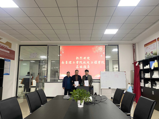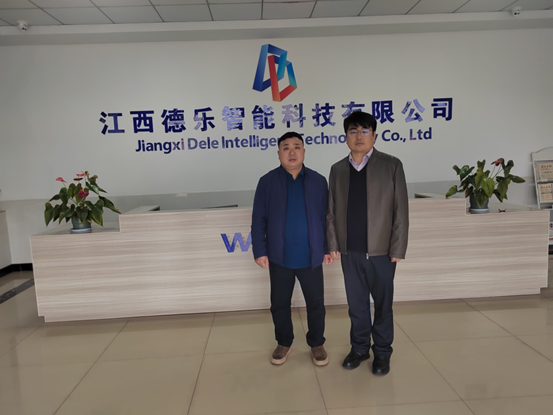 江西德乐智能科技有限公司董事长郑智刚、总设计师吴长泉对学院一行表示热烈欢迎并详细介绍了公司的发展历程、基本业务、运营模式、相关产品和用人需求等情况。机电工程学院党委书记苗士光对企业的热情接待表示感谢,并介绍了学院发展历程、毕业生就业等情况,希望能与企业建立良好的沟通渠道,深化产教融合机制,充分发挥双方资源优势,促进人才培养供给和产业需求全方位融合。